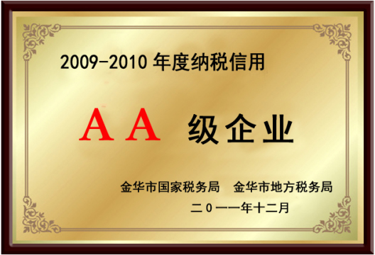 榮獲2009-2010年度納稅信用“aa級(jí)企業(yè)”,“范本建設(shè)單位”